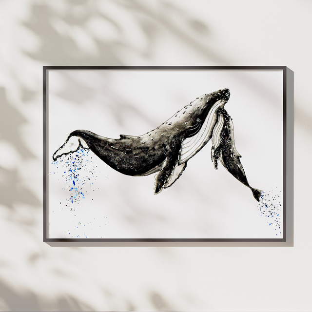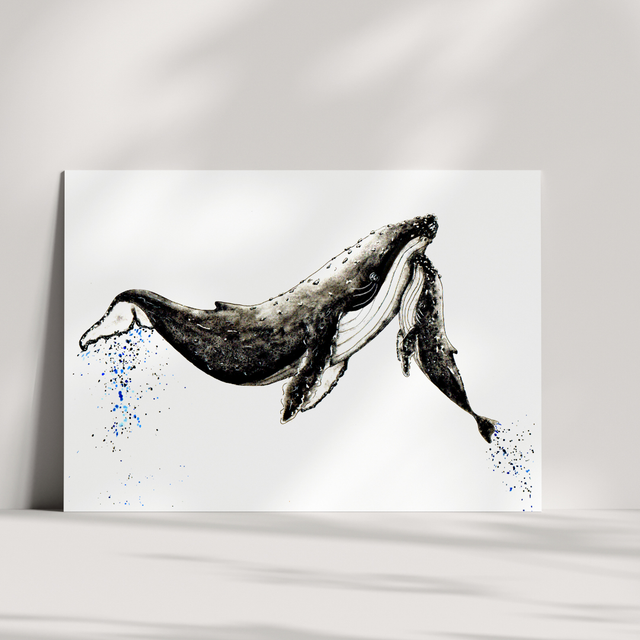 Did you know that humpback whales whisper to their babies? They are trying to be as quiet as possible so the orcas don’t hear them. This unconditional love is beautiful. Looking at this painting will bring you this feeling.