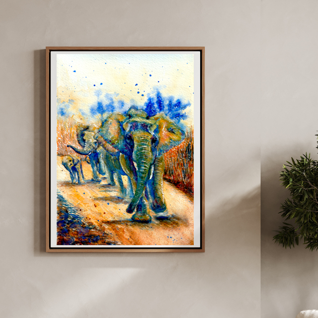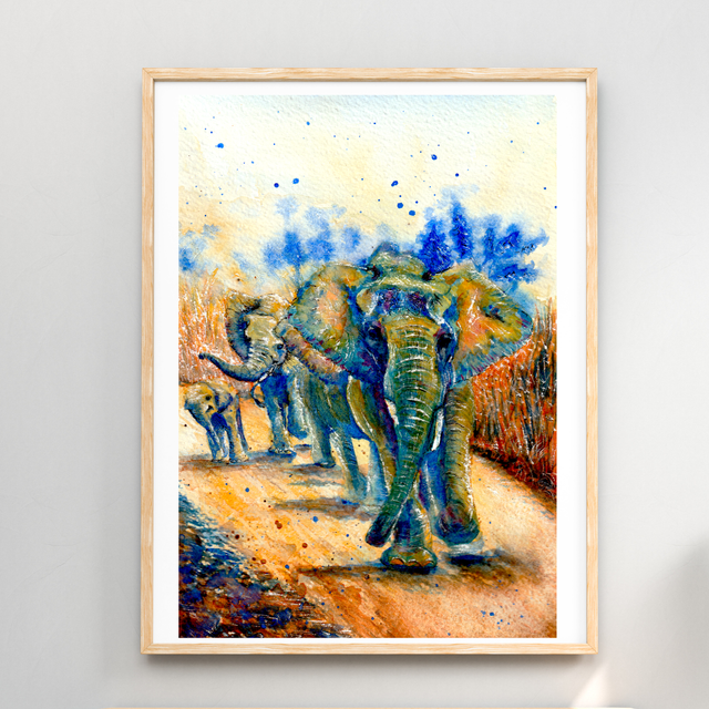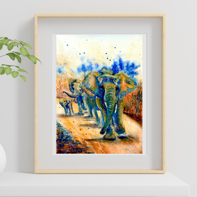 A5 Elephant colony on a walk watercolour print