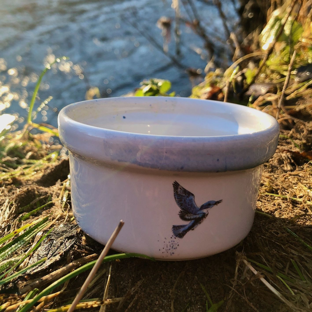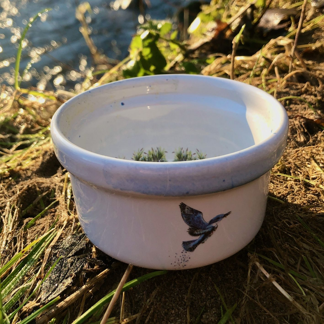 Belted kingfisher upcycled ceramics