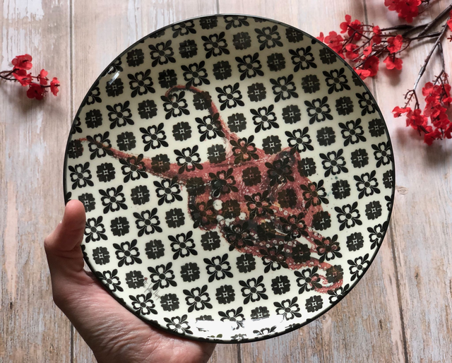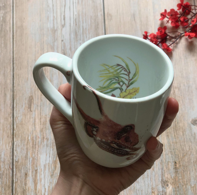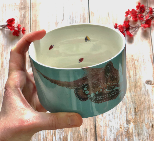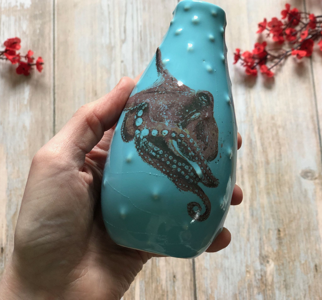 I upcycled these pieces using the ceramic decals of the watercolour paintings I made of an octopus, some fish and a colourful coral reef.