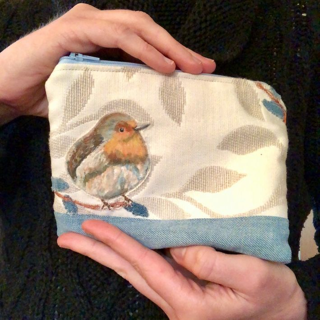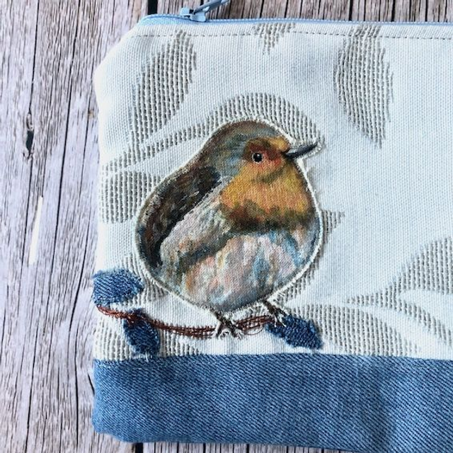 Robin on a branch upcycled pouch
